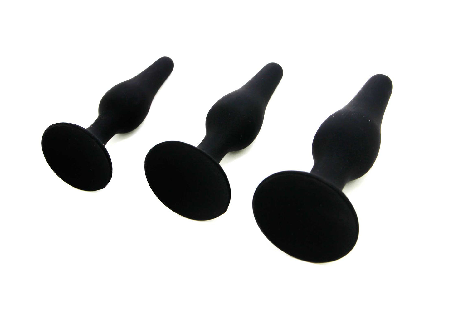 Tres plugs hechos de silicona 100% que son ideales para aquellos que se quieren iniciar en la práctica del sexo anal, con tres tamaños diferentes: el pequeño, el mediano y el grande, para ir gradualmente.