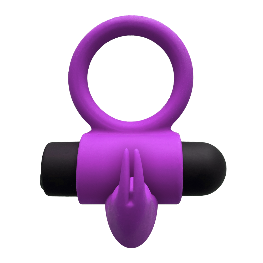 Anillo vibrador con conejito realizado en silicona suave y sedosa de gran calidad. Presentado en un elegante blister con trasera dura.