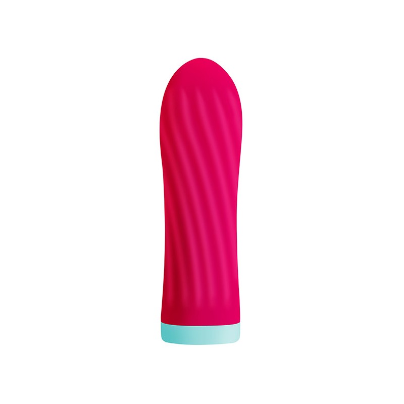 Twist & Shout es una bala vibradora de color cereza que está fabricada con silicona médica. Su eje recto está rodeado de pequeñas estrías diseñadas para una mayor estimulación en zonas erógenas externas como clítoris, testículos, pezones, etc.