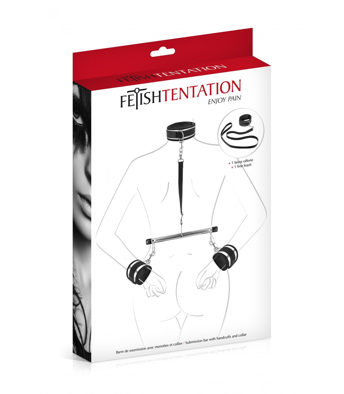 Collar con correa que se puede unir a la barra que va a la espalda con esposas ajustables.