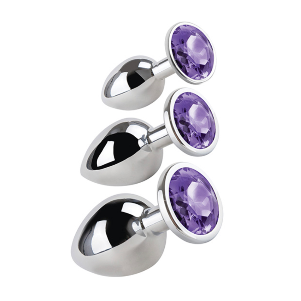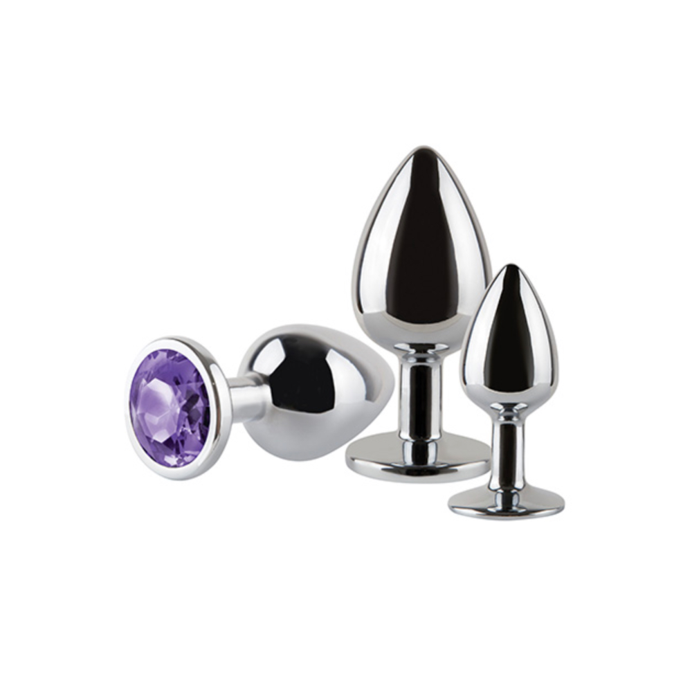 Pack de 3 plugs de metal plateado brillante y diseñados especialmente para la estimulación anal.