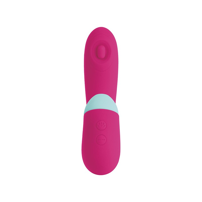 Está fabricado 100% en silicona suave y agradable, en colores muy juveniles y llamativos . Posee dos motores totalmente independientes y controlables a través de dos botones diferenciados. La vibración/pulsación del eje tiene un total de 3 intensidades y 7 patrones de vibraciones potentes, y el succionador tiene hasta 10 modos de succión. Es recargable con cable USB (incluido), sumergible y muy fácil de limpiar.