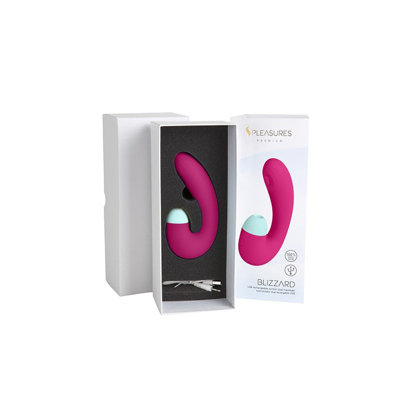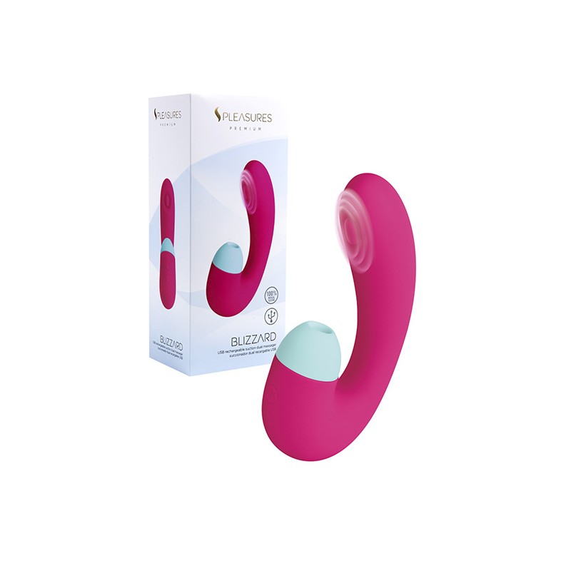 Blizzard es un juguete de doble estimulación pensado especialmente para masajear el punto G y el clítoris de manera simultánea. Internamente estimula con estridentes golpecitos gracias al pulsador que tiene en el eje principal y externamente crea una estimulante succión con ondas de presión.