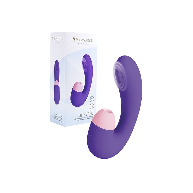 Blizzard es un juguete de doble estimulación pensado especialmente para masajear el punto G y el clítoris de manera simultánea. Internamente estimula con estridentes golpecitos gracias al pulsador que tiene en el eje principal y externamente crea una estimulante succión con ondas de presión.