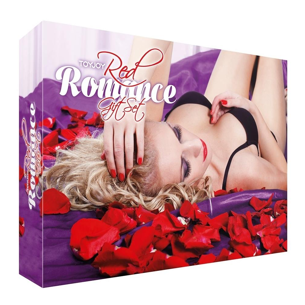 Set romance en color rojo con todo lo necesario para pasar una velada romantica, el kit está compuesto por una vela de masaje, un plumero para hacer cosquillas, esposas con funda de terciopelo, pétalos de rosas, lubricante, anillo vibrador, huevo vibrador con cable y un vibrador de tacto muy suave.