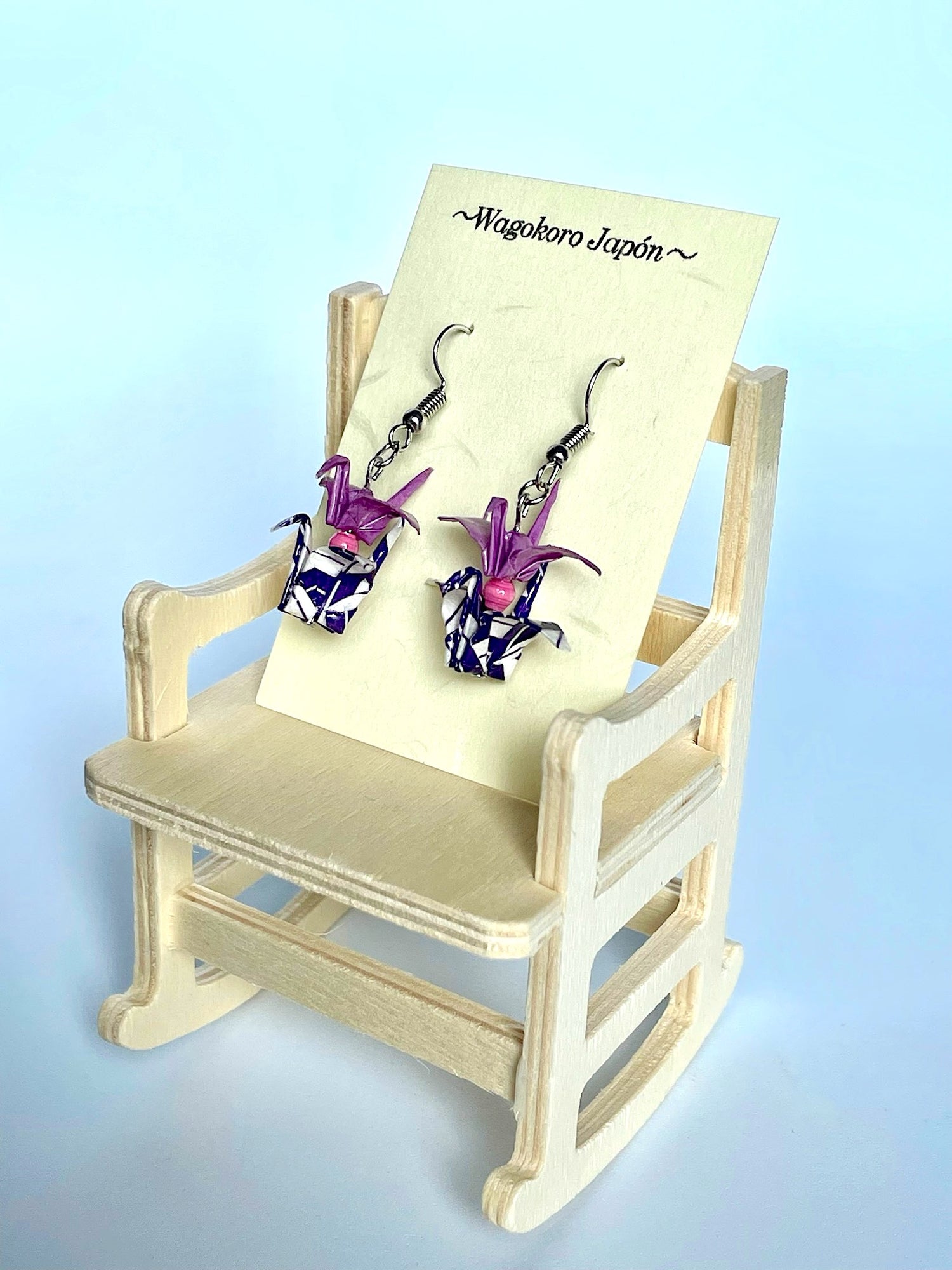Wagokoro Japón Pendientes Pareja de Grullas Lila y Azul-Blanco