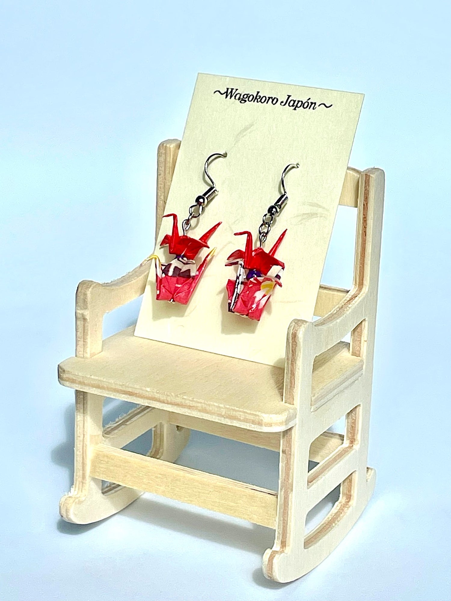 Wagokoro Japón Pendientes Pareja de Grullas Rojo