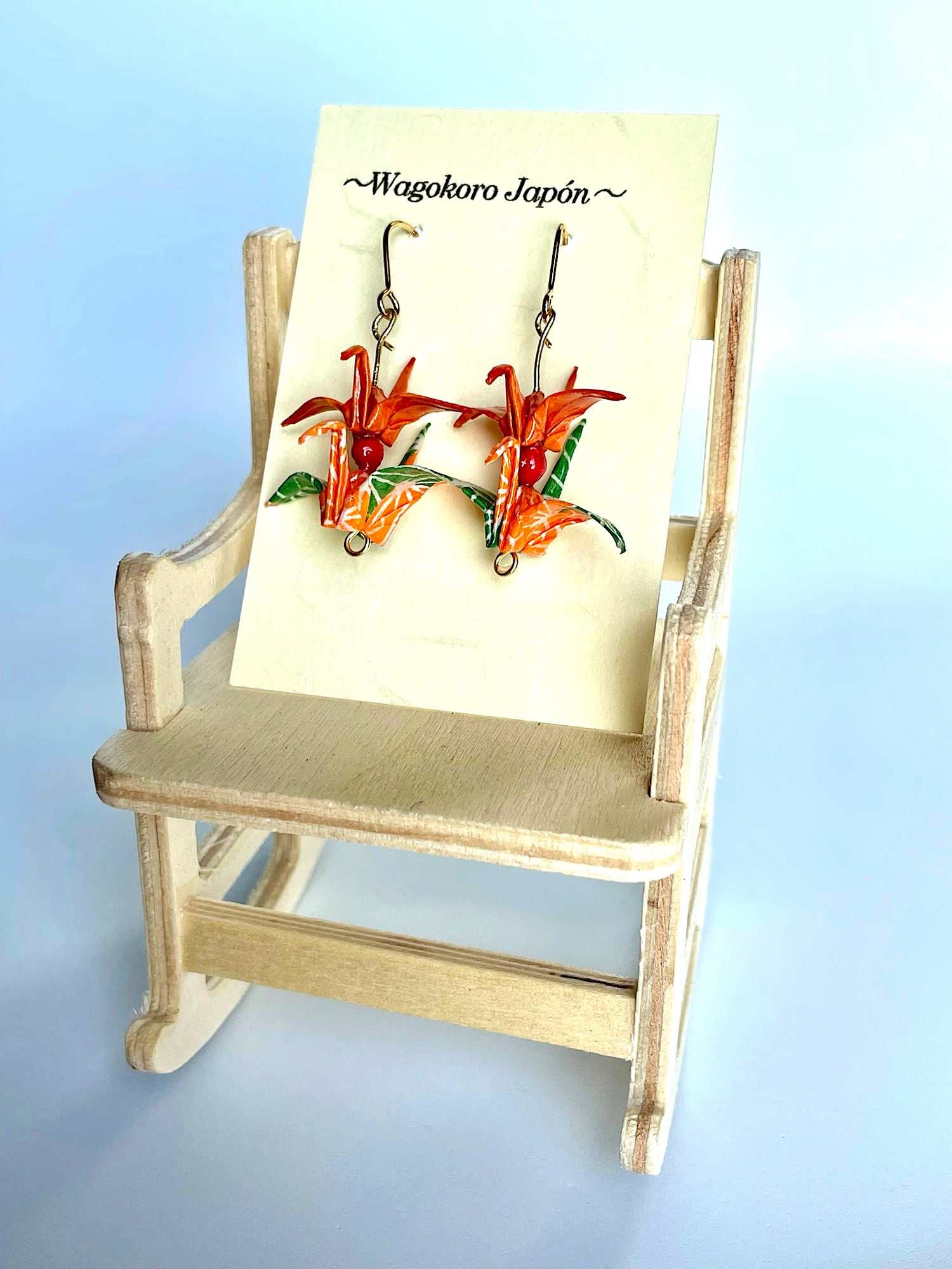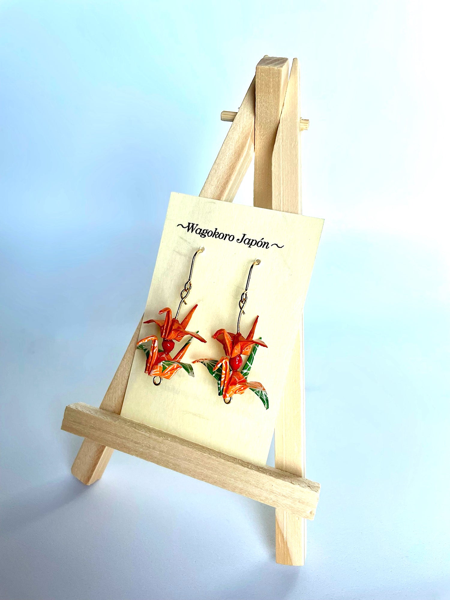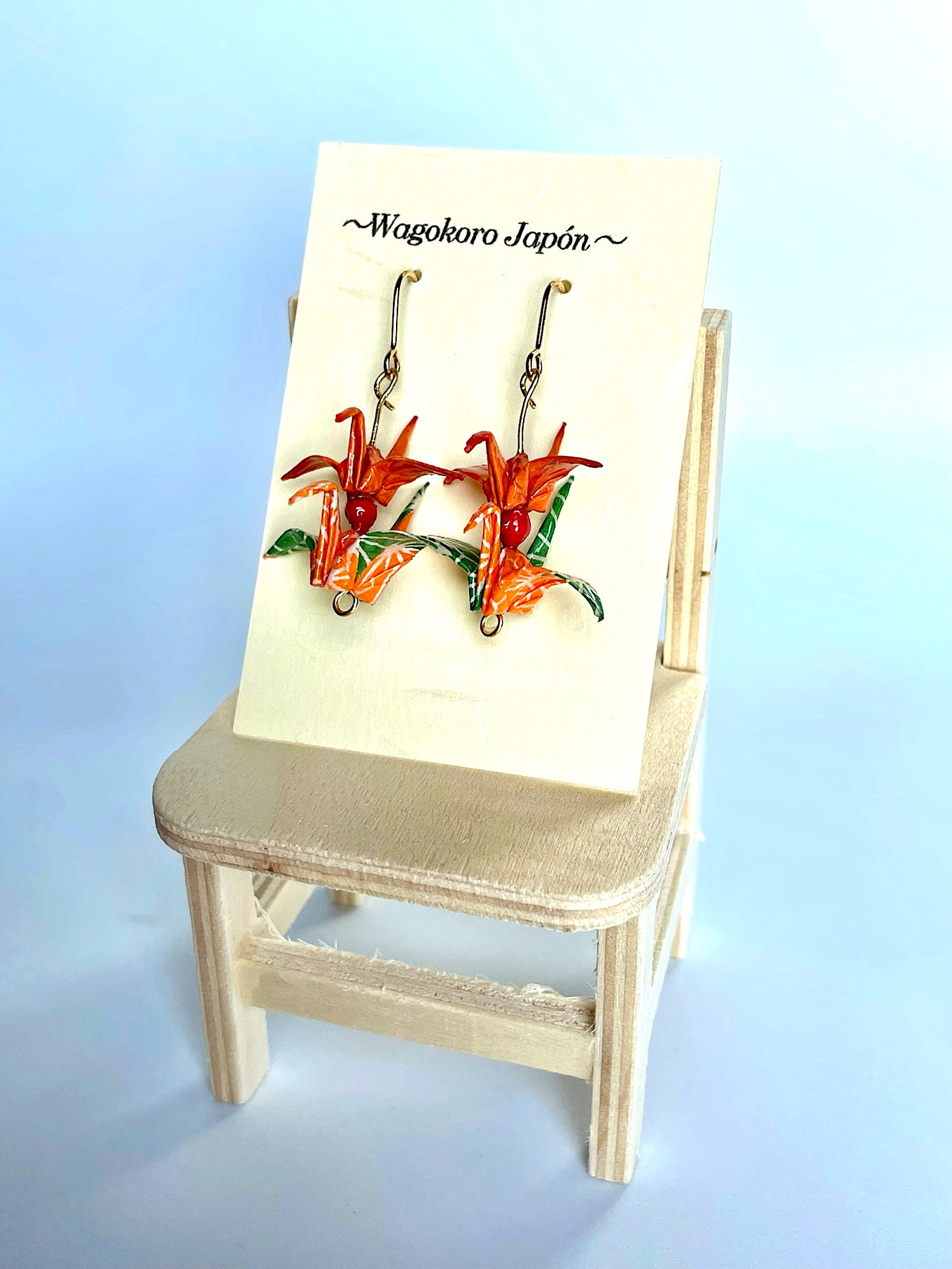 Wagokoro Japón Pendientes Pareja de Grullas Naranja