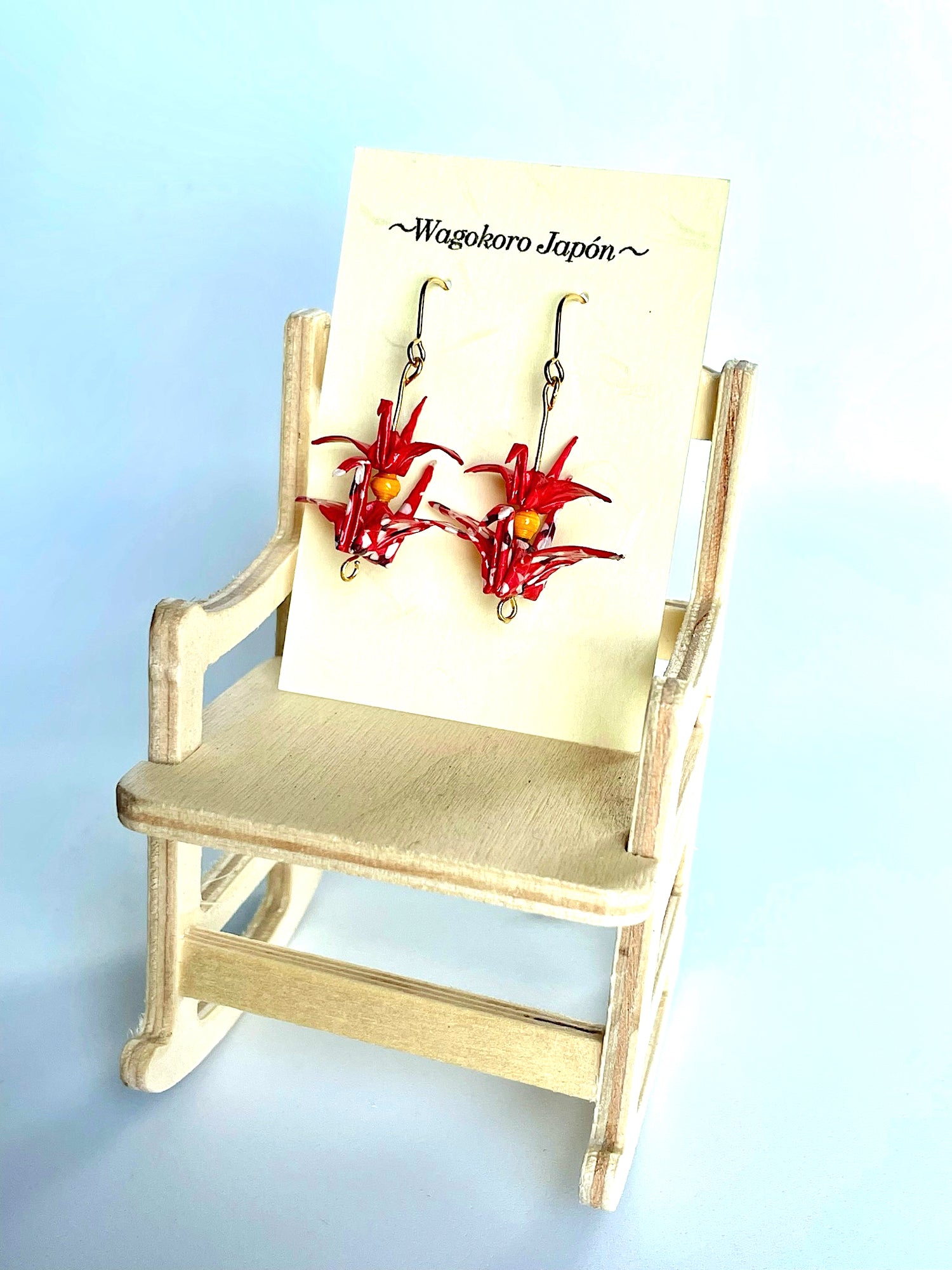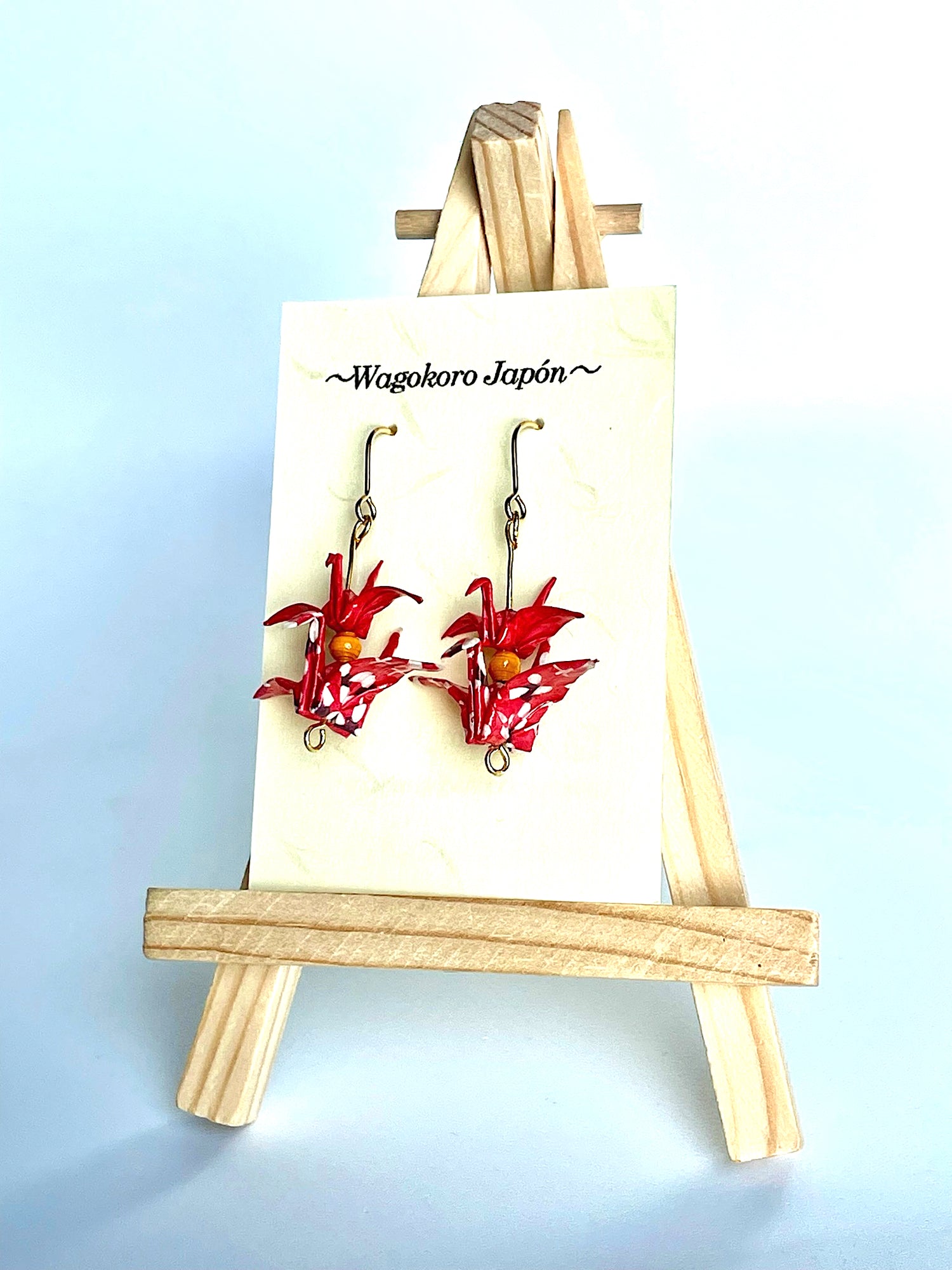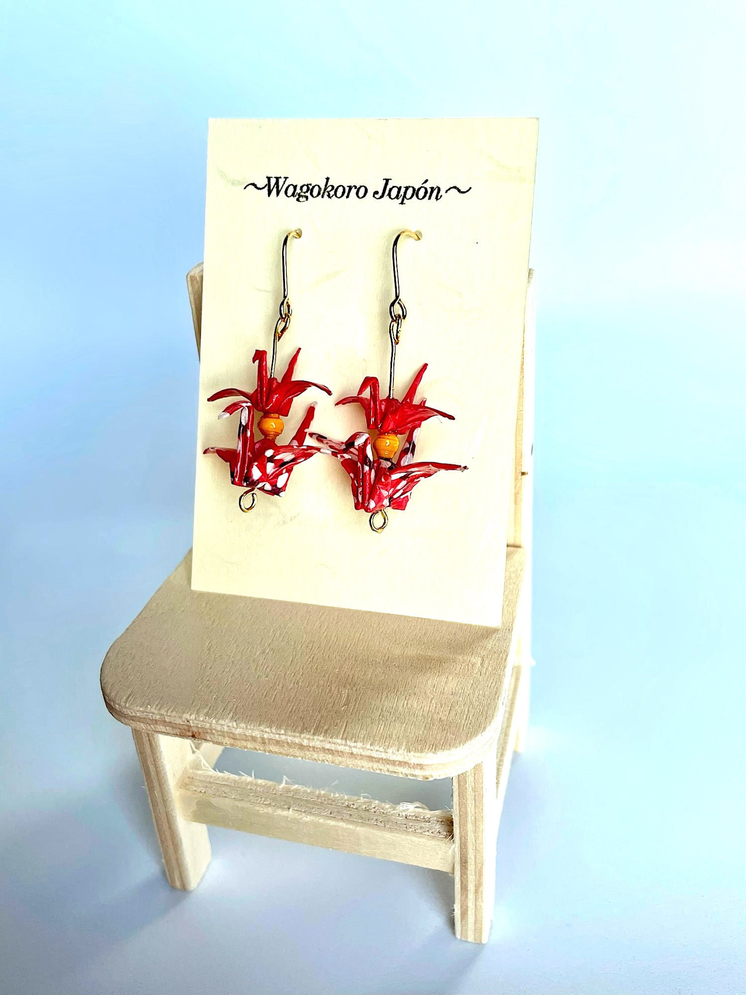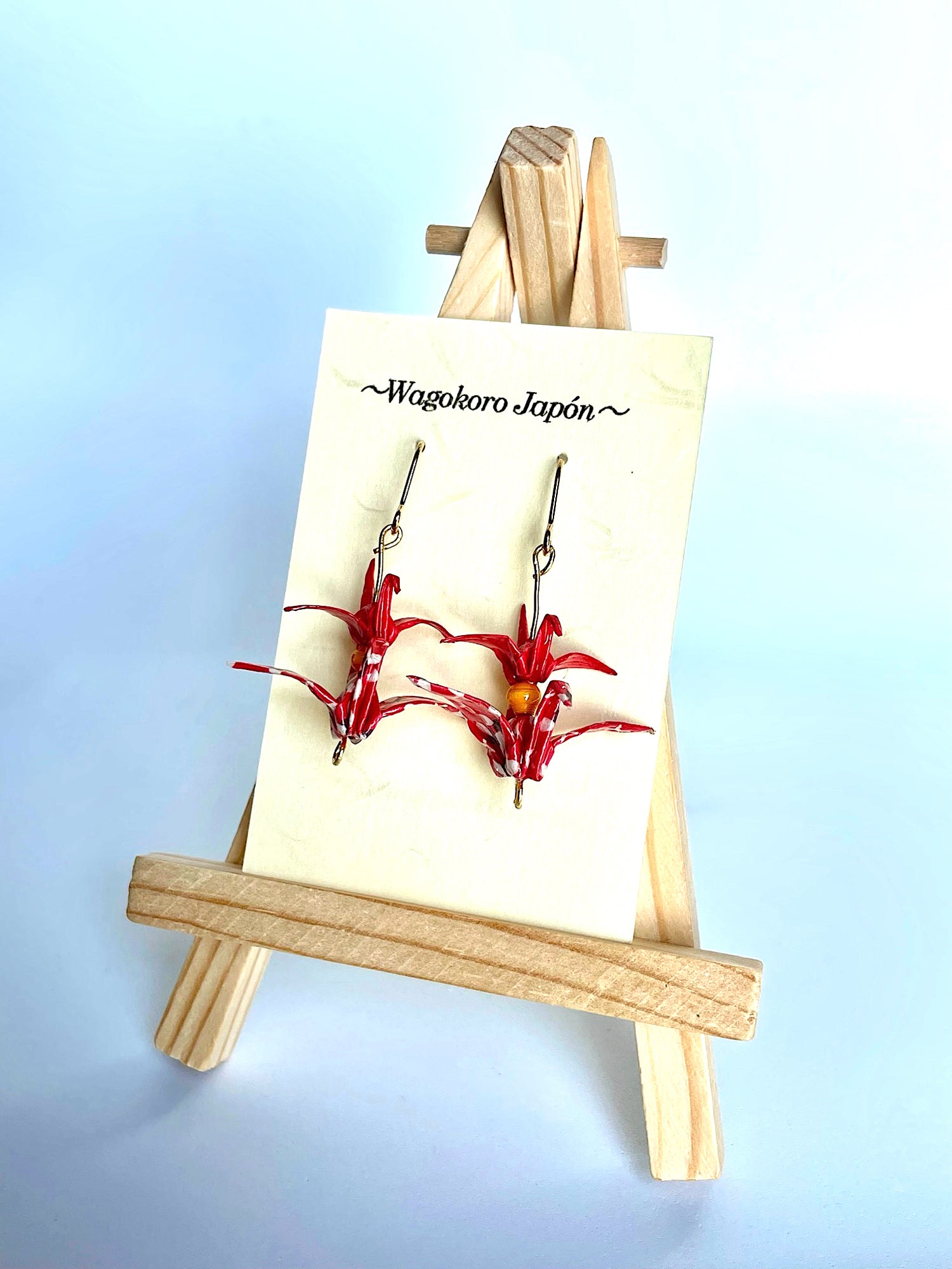 Wagokoro Japón Pendientes Pareja de Grullas Rojo